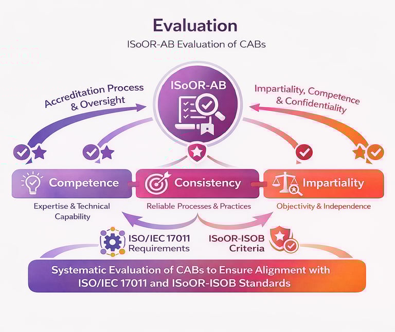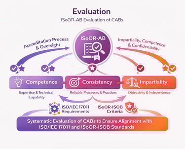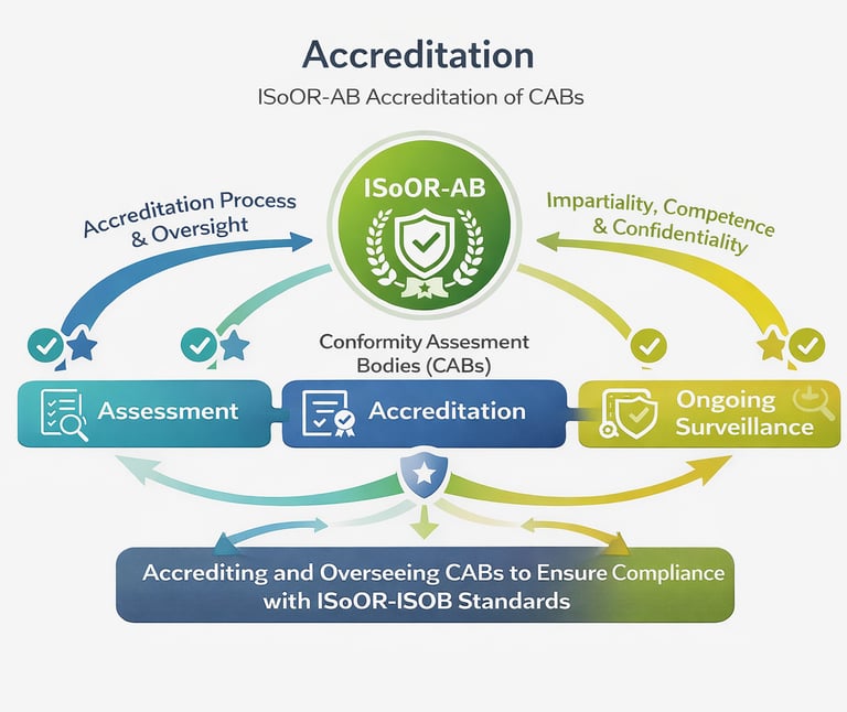 In alignment with ISO/IEC 17011, ISoOR-AB establishes independent committees, documented procedures, and defined roles that prevent conflicts of interest and safeguard objective evaluations. This structure supports the separation of authority between governance, operational, and decision-making functions, reinforcing credibility and trust in the accreditation process.