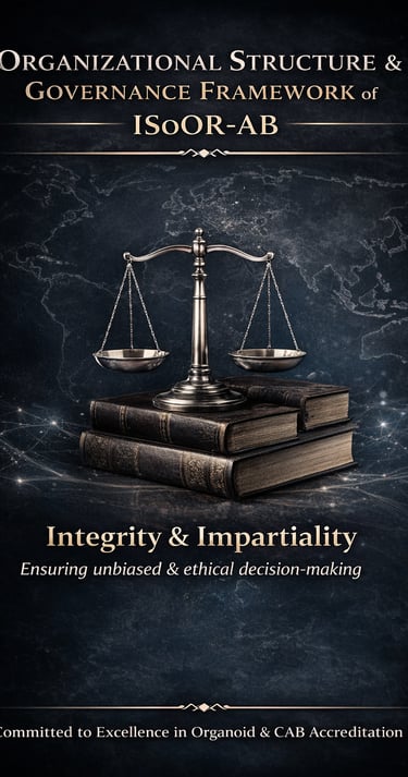 ISoOR, the parent and founding organization of ISoOR-AB, advances organoid research and established ISoOR-ISOB, the first international standard for organoid biobanking (March 2025). Operating independently, ISoOR-AB accredits CABs against this standard, ensuring quality, impartiality, and global recognition through ISO/IEC 17011-aligned governance, robust procedures, and international stakeholder engagement.
